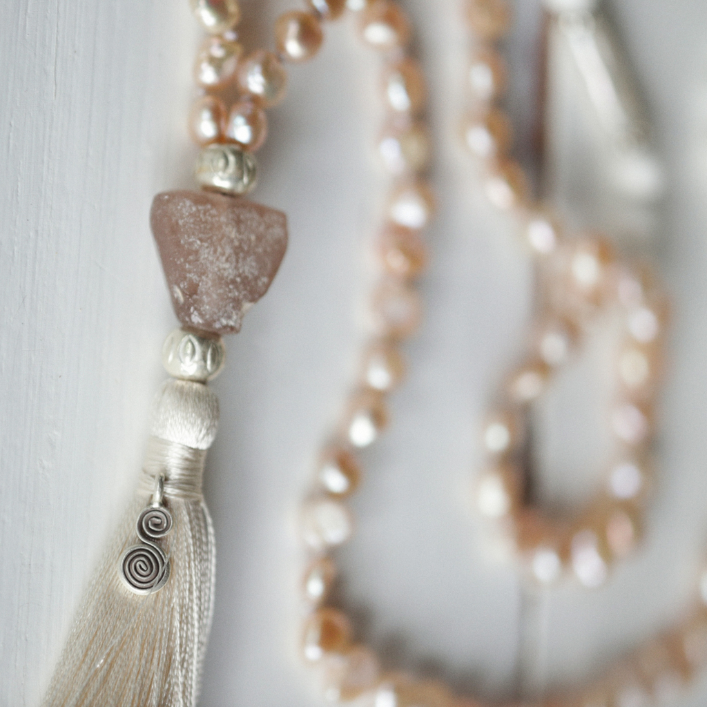 Mala beads have traditionally been used as a meditation tool, guiding breath, mantra, or prayer. In modern practice, they also serve as a somatic anchor — something you can touch, hold, and return to when your mind feels busy or your emotions feel heavy.