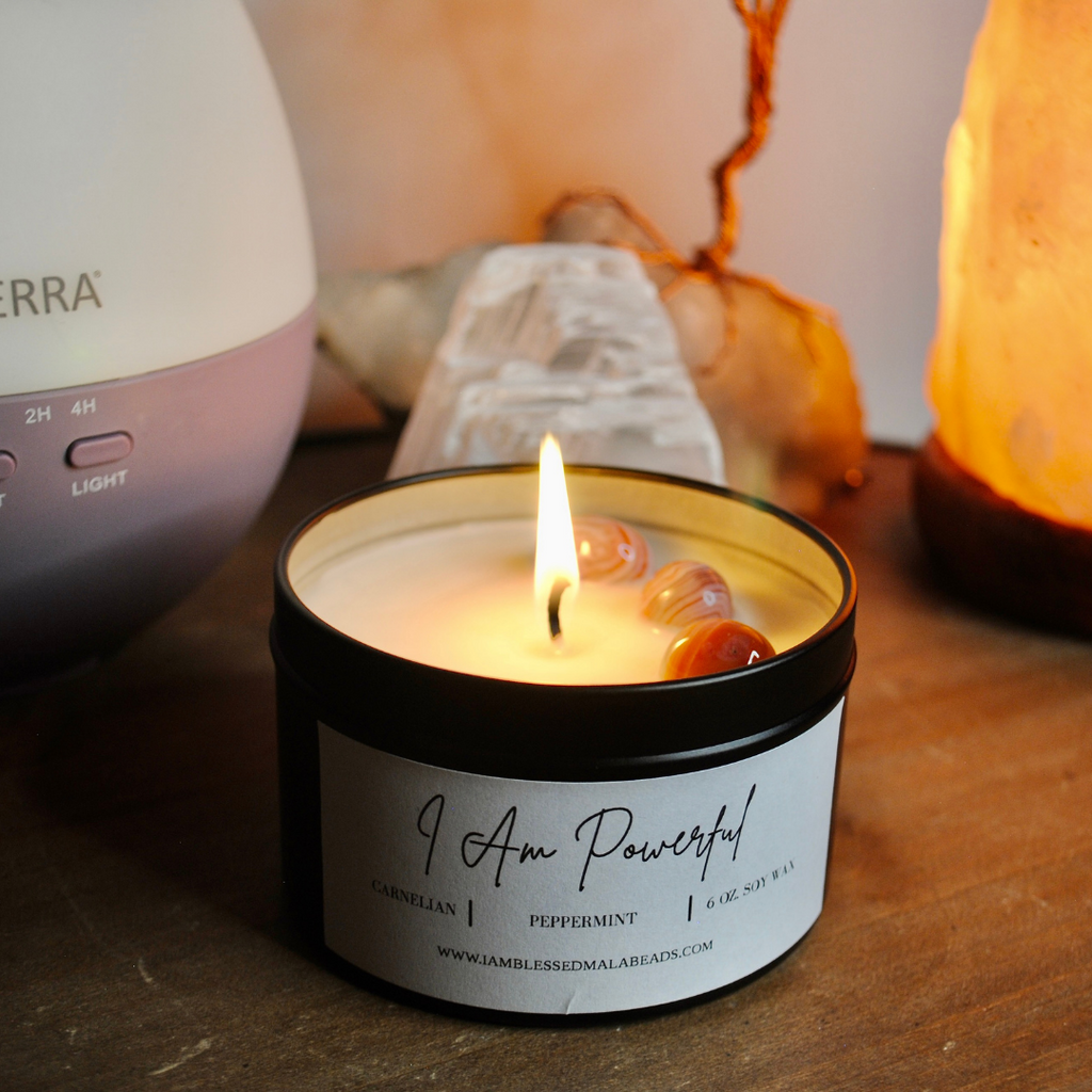 I AM Blessed knows the power of guiding our customers into that powerful state of I AM. Imagine what it would be like to deeply feel the energies of each of our crystal candles. I Am Blessed crystal candles are carefully created to infuse your space with energies that coincide with meditative mantras. Our candles are designed to minimize and eliminate mushrooming and smoke. They are hand-poured with cruelty-free soy